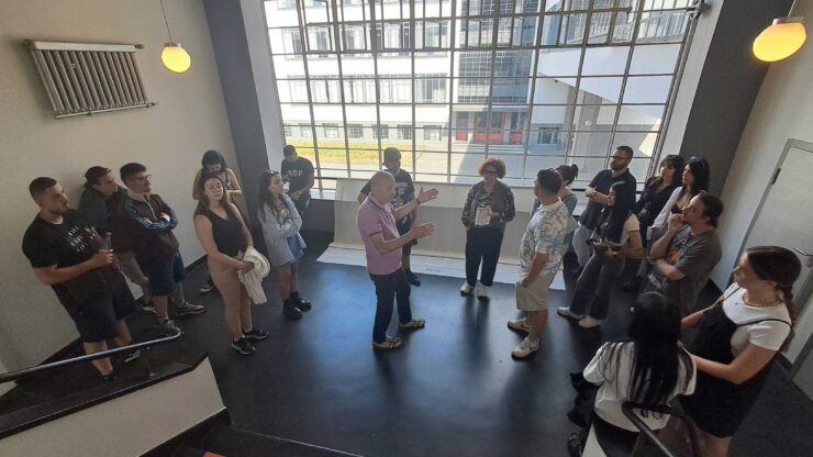 Ένα μακρύ ταξίδι στο χρόνο αποτέλεσε και η επίσκεψη στη θρυλική ΣΧΟΛΗ και το μουσείο του BAUHAUS στην περιοχή του Dessau. Η εκδρομική ομάδα ξεναγήθηκε, εντός και εκτός των χώρων της Σχολής, από ειδικούς εισηγητές/ξεναγούς, με τους οποίους συζήτησαν για την δύναμη των ιδεών του μοντερνισμού και συνομίλησαν για την διδασκαλία και τις εμβληματικές προσωπικότητες της Σχολής. Ήρθαν σε επαφή με τα εμβληματικά έργα του ιδρυτή του κινήματος Walter Gropius: τα χρηστικά αντικείμενα όπως η καρέκλα του Μαρσέλ Μπράουερ, τα κοστούμια μπαλέτου του Όσκαρ Σλέμμερ και πολλά άλλα. Οι σπουδαστές ήρθαν αντιμέτωποι με την σκέψη και τα ερωτήματα που έθεσε η Σχολή, τα οποία -έως και σήμερα- αποτελούν πεδία αναζήτησης & κριτικού στοχασμού, και διαπίστωσαν διά ζώσης ότι δεν υπήρξε άλλο κίνημα που να επηρέασε σε τέτοιο βαθμό τη σύγχρονη τέχνη και αρχιτεκτονική όσο το Bauhaus.
