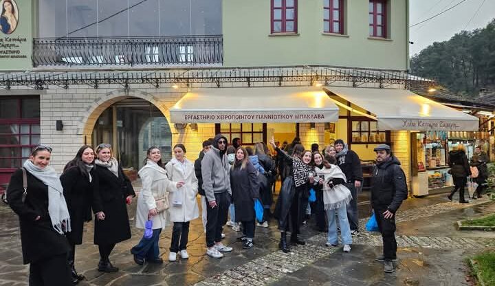 Σε συνεργασία των κλάδων Interior Architecture και Product & Design Innovation πραγματοποιήθηκε (Δεκέμβριος 2024) τριήμερη εκδρομή στα Ιωάννινα και το Μέτσοβο, με τη συνοδεία των καθηγητ(ρι)ών Αντωνίας Κονδύλη (Αρχιτέκτων, Ιστορικός Αρχιτεκτονικής) και Τάσου Αποστόλου (Μηχανικός Περιβάλλοντος).