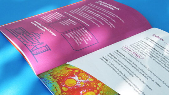Tο σύνολο της δουλειάς (έντυπο με το ετήσιο πρόγραμμα δράσεων, θεματικά φυλλάδια εργαστηρίων, αφίσες, social media posts) δημιουργήθηκε με στόχο να αποτυπώσει τον θαυμαστό κόσμο γνώσης που αποκαλύπτεται μέσα από το Ίδρυμα, το οποίο από το 1956 λειτουργεί με σκοπό την προώθηση της επιστήμης & της τεχνολογίας στο ευρύ κοινό. Στο συγκεκριμένο project, για τον designer το στοίχημα ήταν να κρατηθεί η ισορροπία ανάμεσα στο minimal/σοβαρό και στο παιχνιδιάρικο/φρέσκο. Και νομίζουμε ότι κερδήθηκε!