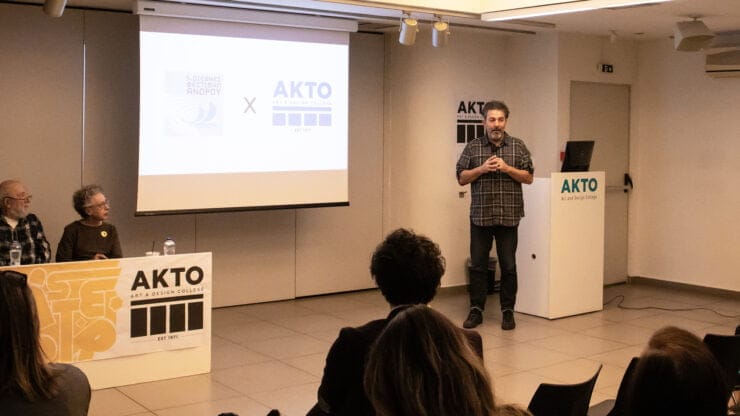 Νιώθω δέος που βρίσκομαι μπροστά σας […]”. Με αυτή τη φράση, ο Παντελής Βούλγαρης ξεκίνησε την ομιλία του, απευθυνόμενος στα μέλη της σπουδαστικής κοινότητας του ΑΚΤΟ από το πρόγραμμα BA (Hons) Graphic Design