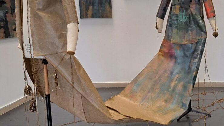 Το λινό ύφασμα που υπήρξε η βάση για δημιουργήσουν οι καλλιτέχνες τα έργα τους μέσα στην ιστορία της ζωγραφικής, στα μάτια μου επέστρεψε στην αρχική του λειτουργία, αυτή της ένδυσης του σώματος.