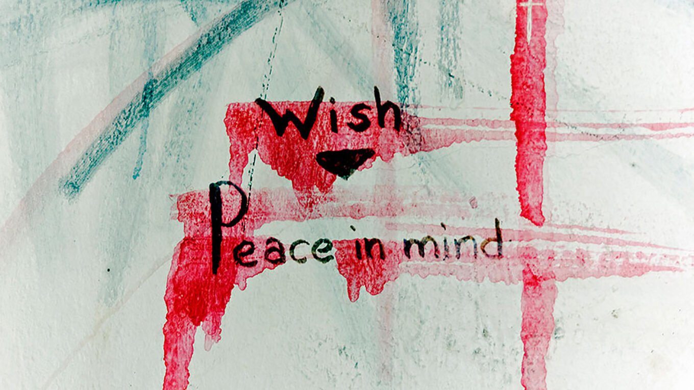 Ο τίτλος της έκθεσης προέρχεται από έναν τοίχο στο Ψυχιατρικό Νοσοκομείο Αττικής, όπου κάποιος νοσηλευόμενος είχε γράψει τη φράση Wish Peace in Mind.